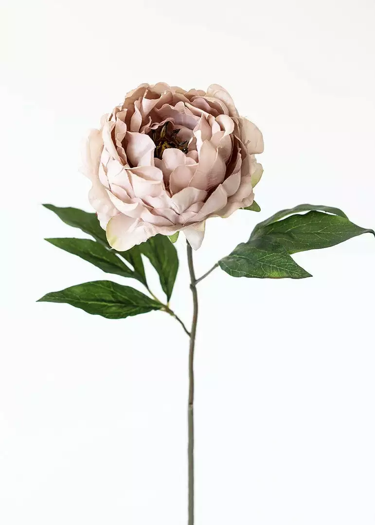 Big, beautiful blooms are always in season – This artificial silk peony in taupe mauve will be the showcase of any faux floral arrangement adding a stunning contemporary shade of purple. Warm up any cool-toned room with this unique modern accent and enjoy the look of fresh-cut peonies…forever! This oversized bloom features fluffy petals with lifelike detailing around the edges and a fully-wired stem for easy arranging.