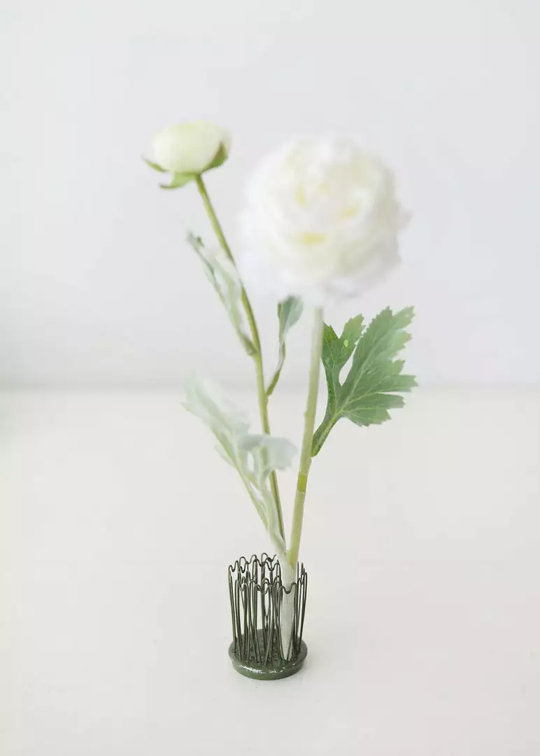 This heirloom floral arranging tool allows you to simply create flower arrangements without a fuss and with no foam. This round hairpin flower frog holder in green has a heavy base and the brass looped pins are bendable and make it easy for you to design from any angle. A lifetime reusable floral tool that will be passed down through the generations of floral admirers in your family. Can be used with fresh and fake flowers. This floral frog hairpin is handcrafted and sturdy to be reused through the generations.