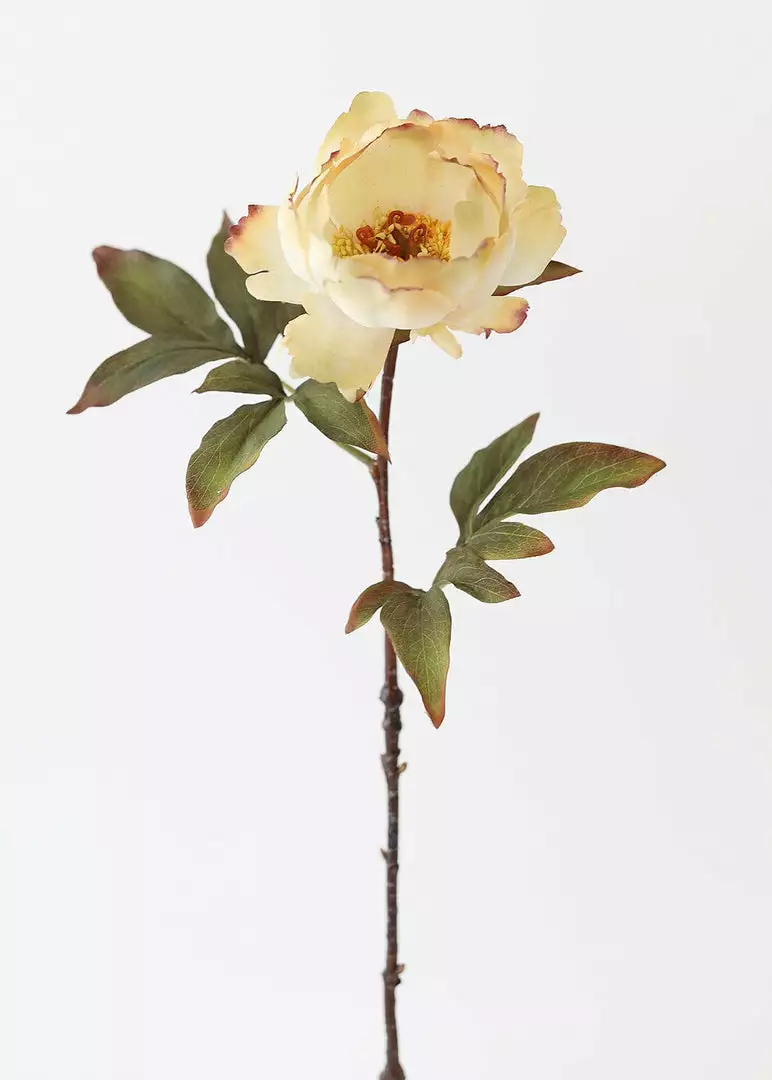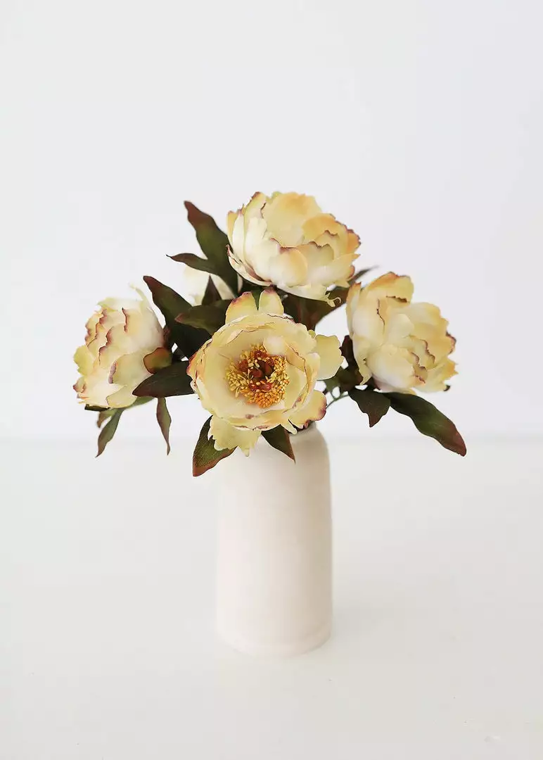Artificial flowers in neutrals are found in this lovely peony stem in a mix of ivory and vanilla. Style these fake peonies into your fall floral arrangements to create a dramatic contrast between subtle and bold hues.