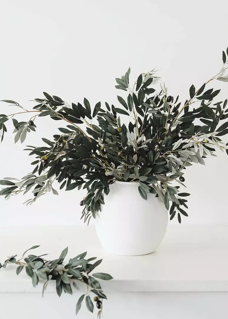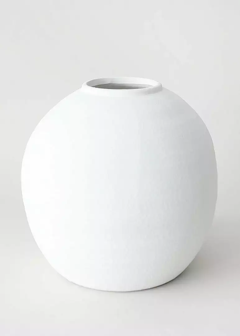 Create a stunning Spring floral arrangement with this flat white large concrete konos vase. Simply add a few artificial branches or dried grasses to create a simple centerpiece for your home decor. As seen styled with our fake olive branches and Norfolk stems.