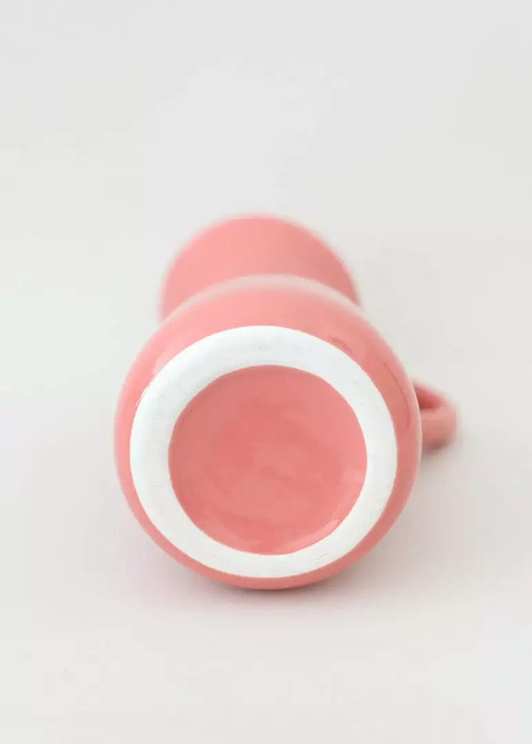 Find trendy ceramic flower vases for everyday home decorating, like this striking coral pink glossy pitcher vase with a handle. Simply fill it with your favorite white artificial flowers to create a look that pops.